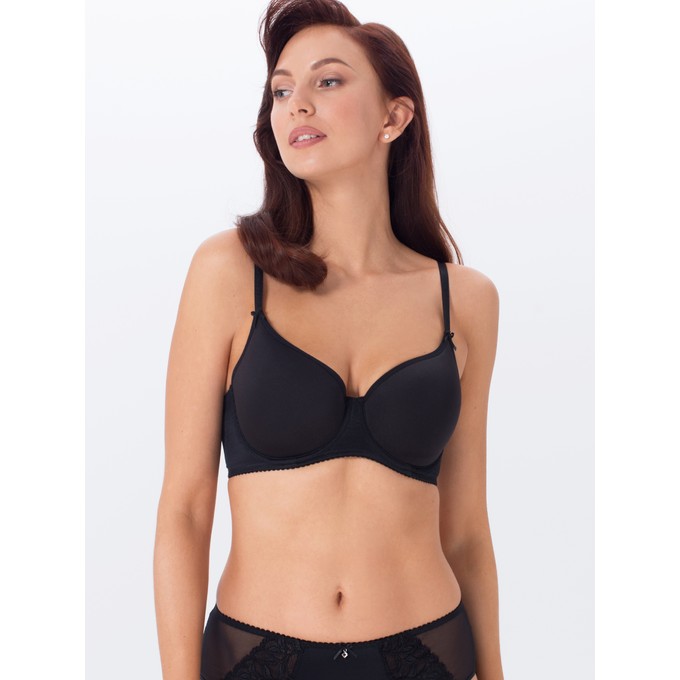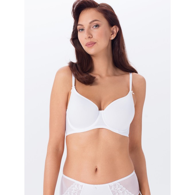 Определить размерГладкий бюстгальтер с формованной чашкой "спейсер" на каркасах. Чашки бюстгальтера выполнены по современной технологии "спейсер", главной особенностью которого является уникальная текстура, позволяющая свободно проходить воздуху сквозь чашку бюстгальтера, благодаря чему кожа может свободно дышать в течение дня. В боковой части чашки присутствует уплотнитель из хлопкового трикотажного полотна. Стан бюстгальтера выполнен из гладкого эластичного полотна, обладающей усиленной упругостью, что обеспечивает надежную поддержку груди. Несъемные бретели, регулируемые по высоте, украшены бантиком.