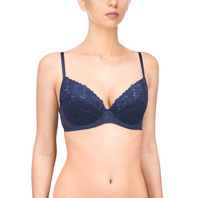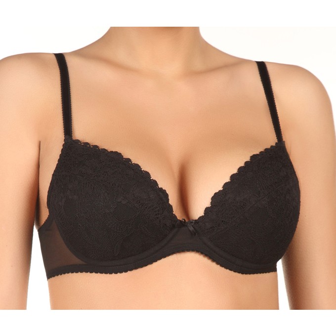 Определить размерБюстгальтер «пуш-ап» из широкого эластичного кружева, на каркасах. Чашки на дубляже с хлопком, с объемными вкладышами. Стан бюстгальтера из эластичного сетчатого полотна. Мягкая изнаночная сторона тесьмы и бретелей. Декор: бантик.