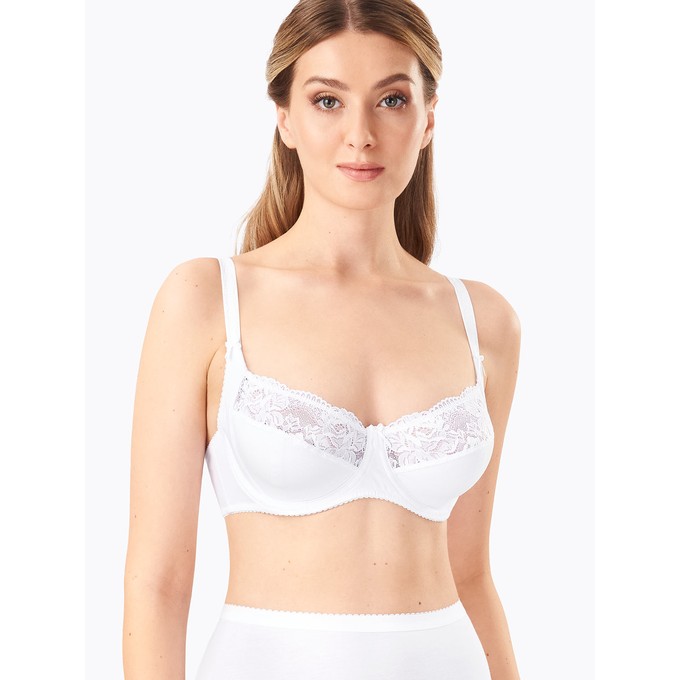 Определить размерБюстгальтер из натурального хлопка с лайкрой, на каркасах. Отделка по верхней части чашки из широкого эластичного кружева. Боковая поддерживающая деталь чашки из дубляжа. Дополнительные пластины по бокам обеспечивают идеальную форму и комфортное распределение нагрузки. Мягкая изнаночная сторона тесьмы и бретелей. Декор: бантик.
