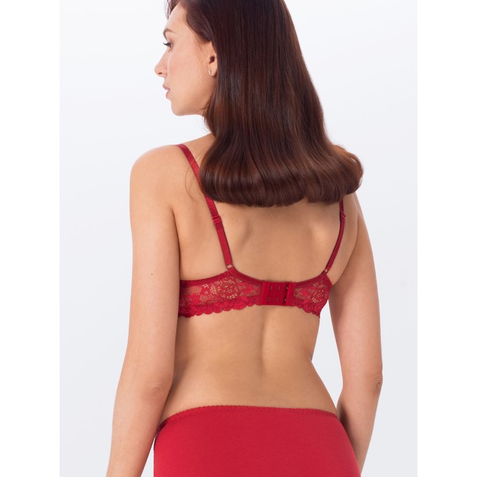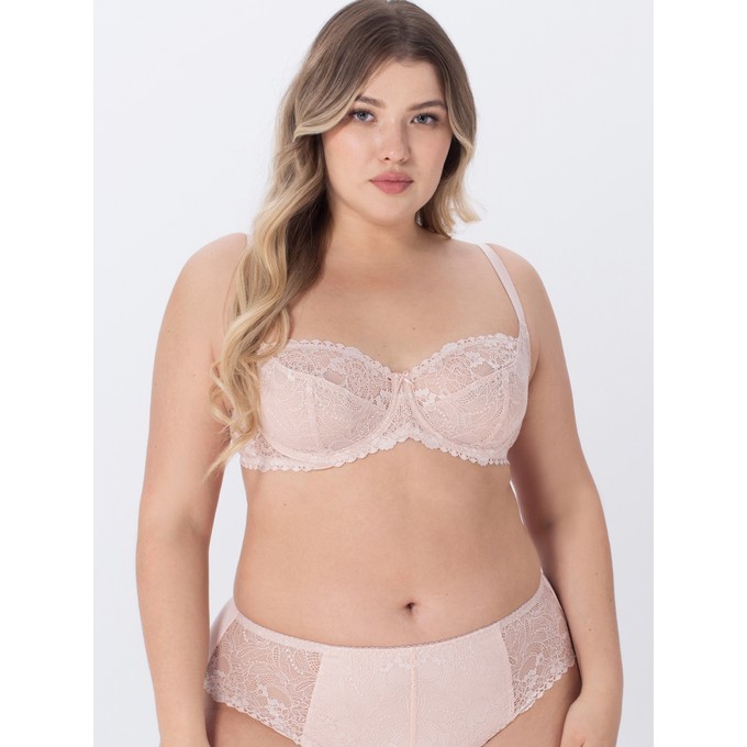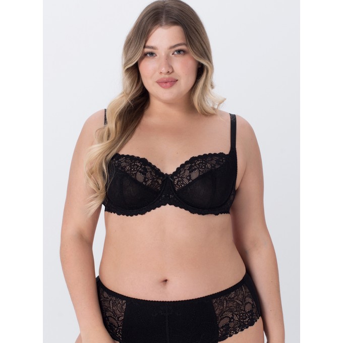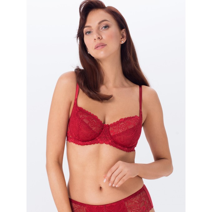 Определить размерБюстгальтер из широкого эластичного кружева, на каркасах. Нижние части мягкой чашки на подкладке из эластичного сетчатого полотна. Мягкая изнаночная сторона тесьмы и бретелей. Декор: бантик.