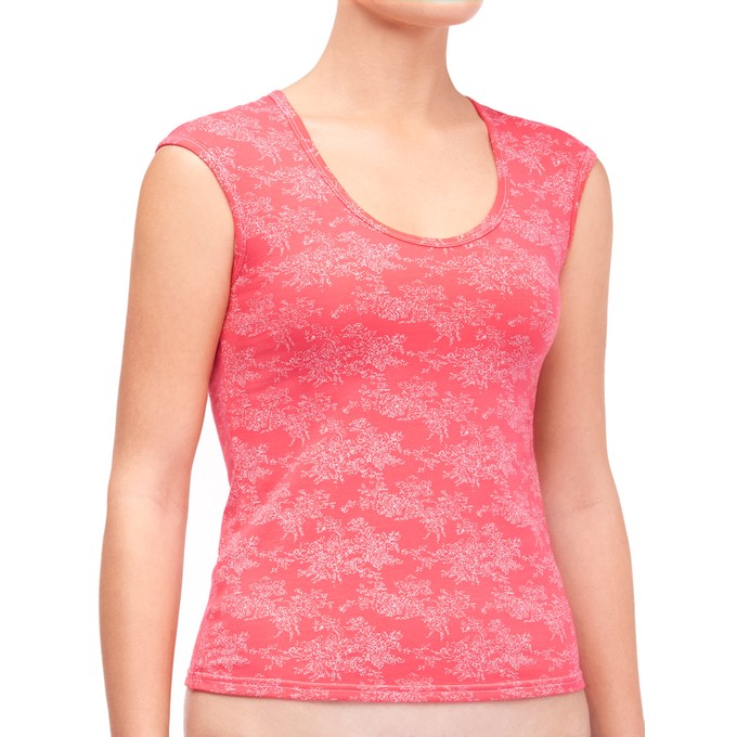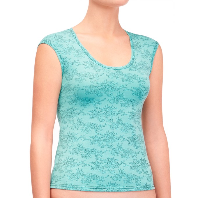Майка женская из эластичного трикотажного хлопкового полотна с лайкрой, полуприлегающего силуэта, с удлиненным плечом. Горловина и срезы проймы обработаны окантовкой. Низ изделия обработан вподгибку.