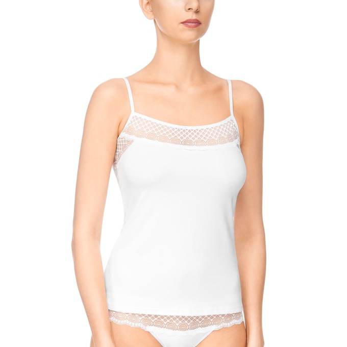Определить размерМайка из натурального хлопка с лайкрой, прилегающего силуэта. Узкие регулируемые бретели из мягкой эластичной ленты. Отделка по верхним срезам переда и спинки из эластичного широкого кружева.