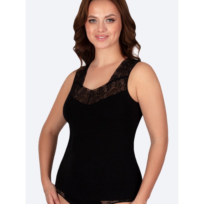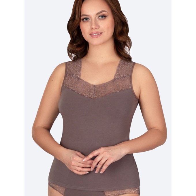 Определить размерЖенская бельевая майка изготовлена из натурального хлопка с лайкрой в сочетании с широким эластичным кружевом. Содержание хлопка даёт гипоаллергенность и позволяет телу дышать, небольшое содержание синтетических нитей придает эластичность, что делает ношение нижнего белья комфортным. Трикотажная майка женская базовая имеет прилегающий силуэт и широкие бретели. Отделка по верхнему срезу выполнена из широкого эластичного кружева. Благодаря качественному составу, майка женская не деформируется и не меняет свой цвет даже при длительном ношении и после стирок. Женская майка с кружевом - идеальный вариант для создания повседневного образа, как база гардероба, а также отлично подойдёт как домашняя одежда, одежда для сна и отдыха.