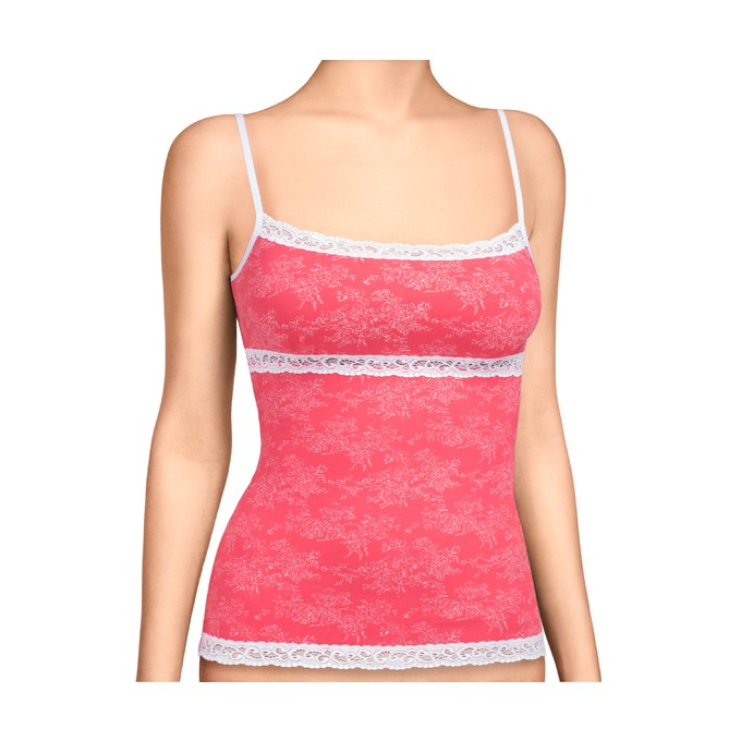 Определить размерМайка из натурального хлопка с лайкрой, прилегающего силуэта. Узкие бретели из мягкой эластичной ленты. Подрез передней детали подчеркивает линию груди. Отделка по верхним срезам переда и спинки из эластичного узкого кружева.