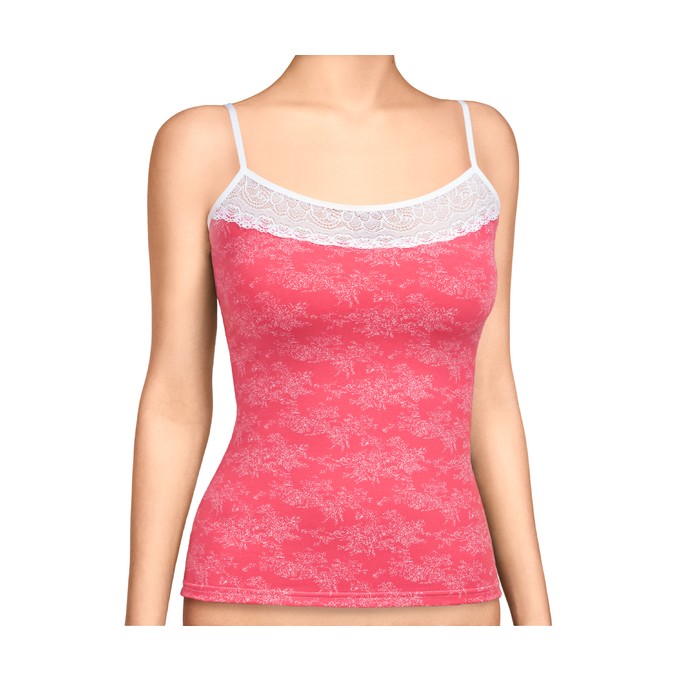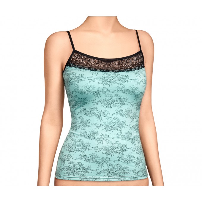 Определить размерМайка из натурального хлопка с лайкрой, прилегающего силуэта. Узкие бретели из мягкой эластичной ленты. Отделка по верхнему срезу переда из эластичного широкого кружева.