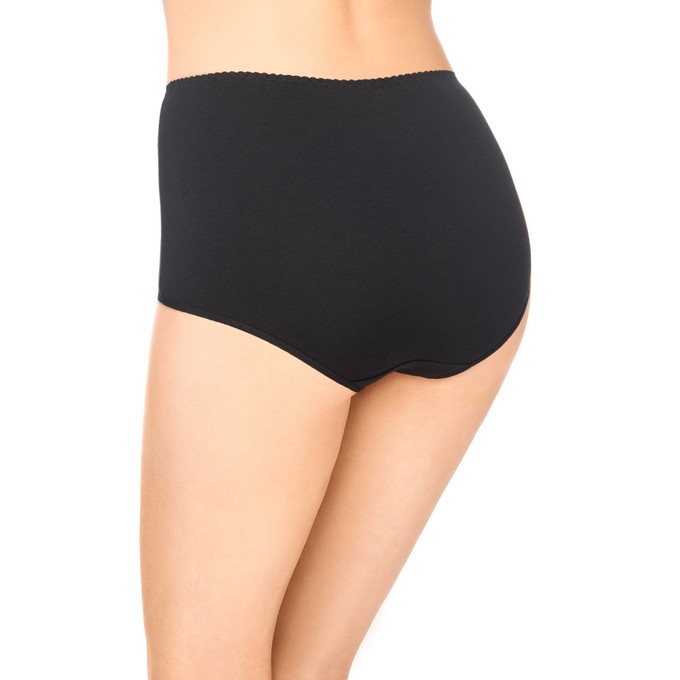 Трусы из натурального хлопка с лайкрой с высокой линией талии. Отделка по передней части из широкого эластичного кружева. Мягкая эластичная тесьма по талии Узкие эластичные ленты по бедрам настрочены незаметным плоским швом.