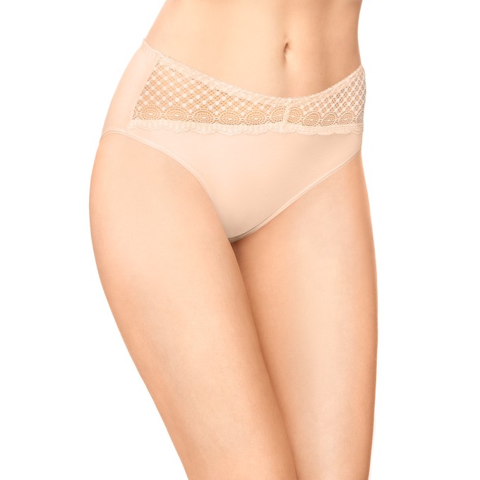 Определить размерТрусы из натурального хлопка с лайкрой с высокой линией талии. Отделка по передней части из широкого эластичного кружева. Мягкая эластичная тесьма по талии. Ластовица и узкие эластичные ленты по бедрам настрочены незаметным плоским швом.