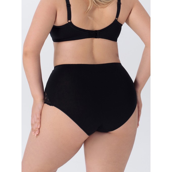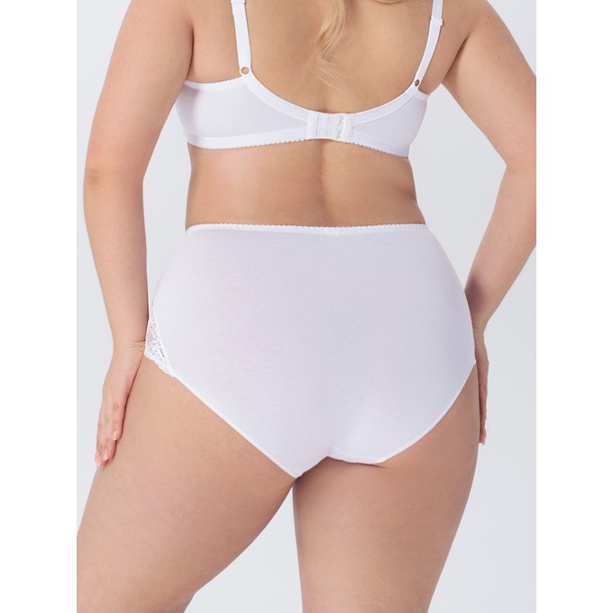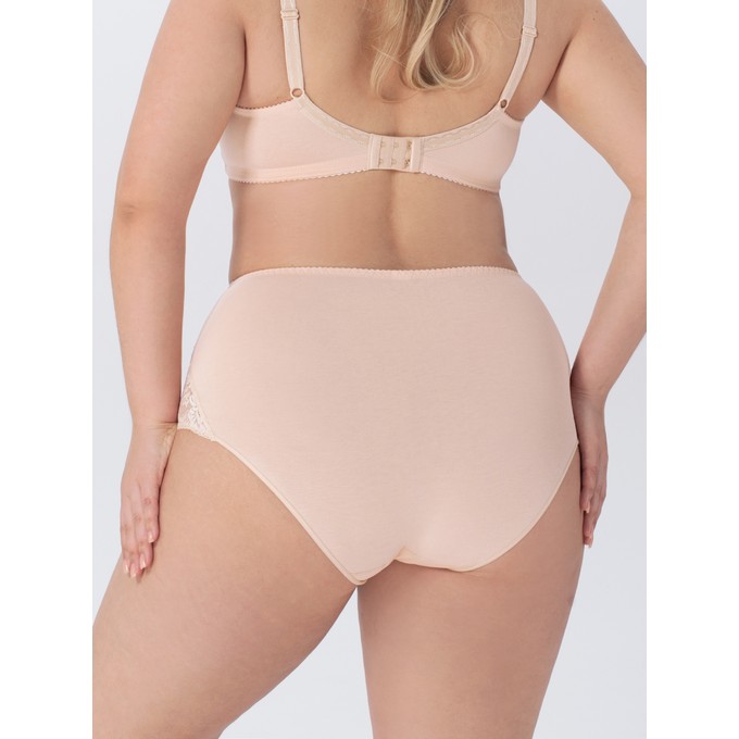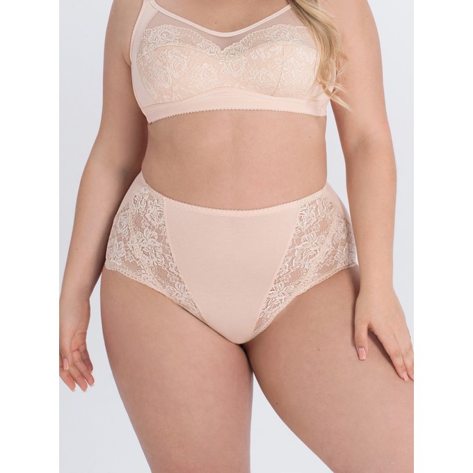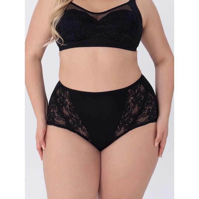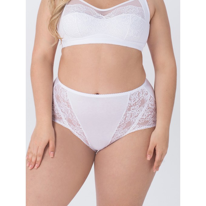 Определить размерТрусы из натурального хлопка с лайкрой с высокой линией талии. Отделка по передней части из широкого эластичного кружева. Мягкая эластичная тесьма по талии. Ластовица и узкие эластичные ленты по бедрам настрочены незаметным плоским швом.