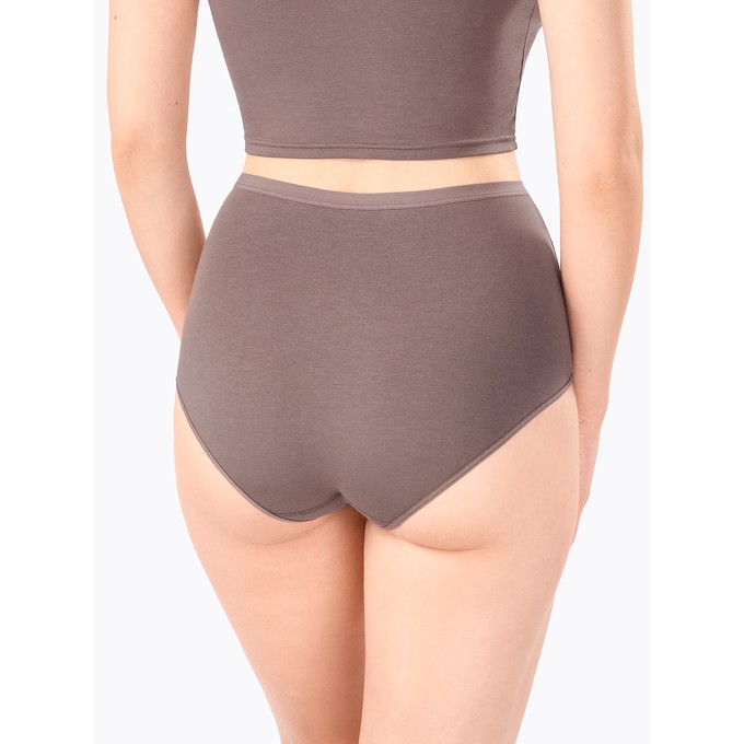 Трусы с высокой линией талии, из натурального хлопка с лайкрой. Мягкая эластичная тесьма по линии талии. Ластовица и узкие эластичные ленты по бедрам настрочены незаметным плоским швом.