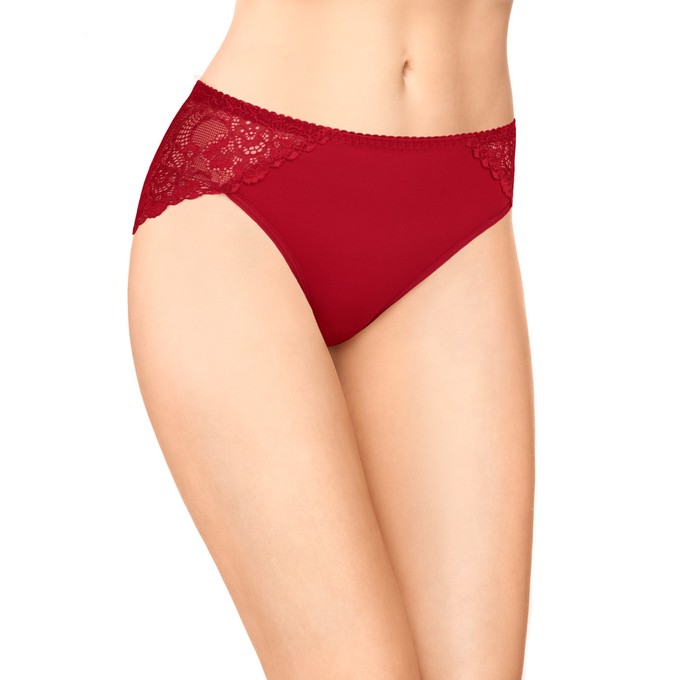 Трусы из гладкого эластичного полотна Tactel с высокой линией талии. Отделка из широкого эластичного кружева по задней части. Ластовица из натурального хлопка с лайкрой. Мягкая эластичная тесьма по талии. Ластовица и узкие эластичные ленты по бедрам настрочены незаметным плоским швом.