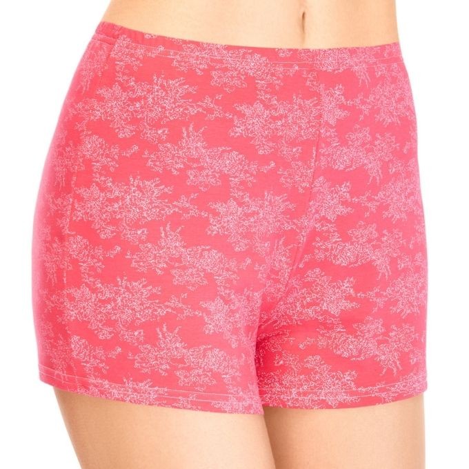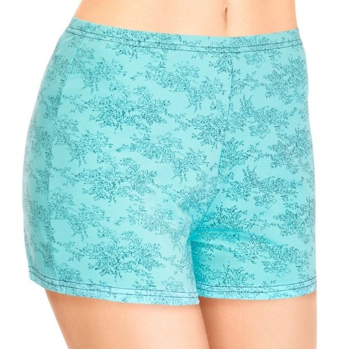 Шорты пижамные женские из эластичного трикотажного хлопкового полотна. Верхний край обработан широкой резинкой вподгибку. Низ изделия обработан вподгибку на спецмашине.