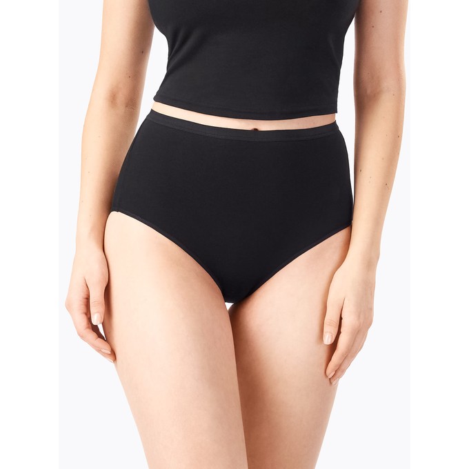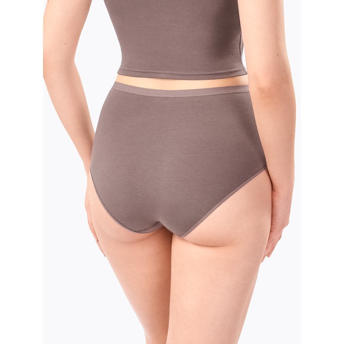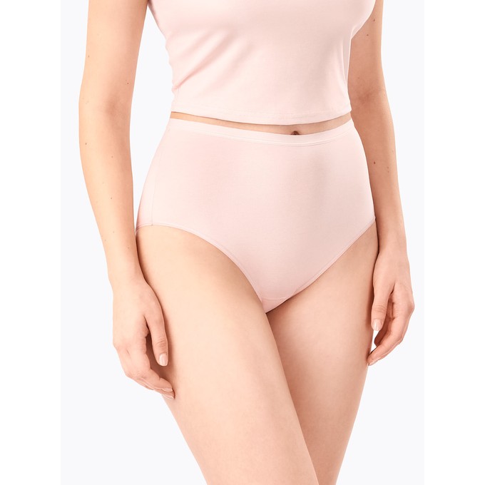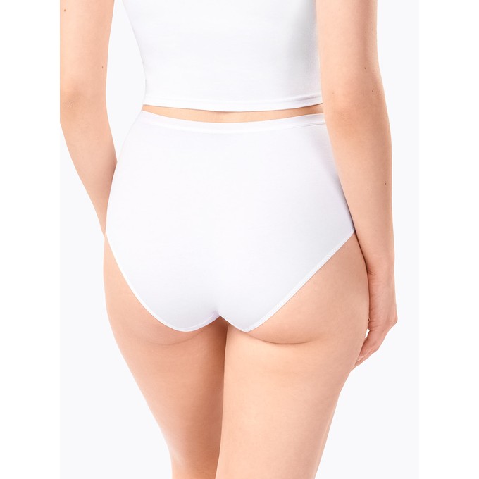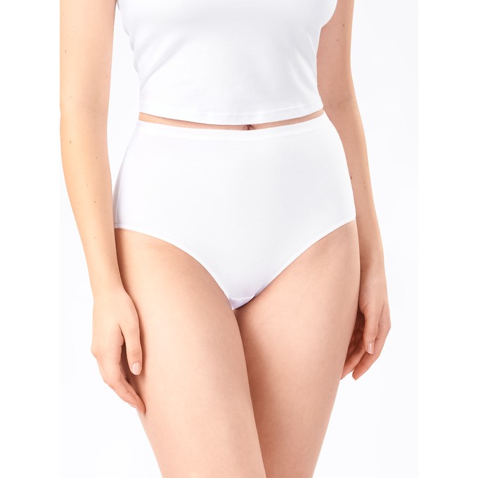 Слипы с высокой линией талии, из натурального хлопка с лайкрой. Мягкая эластичная тесьма по линии талии. Ластовица и узкие эластичные ленты по бедрам настрочены незаметным плоским швом.