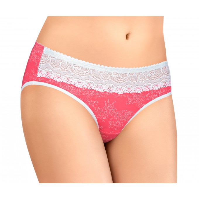 Определить размерСлипы из натурального хлопка с лайкрой со средней линией талии. Отделка по передней части из широкого эластичного кружева. Мягкая эластичная тесьма по талии. Ластовица и узкие эластичные ленты по бедрам настрочены незаметным плоским швом.