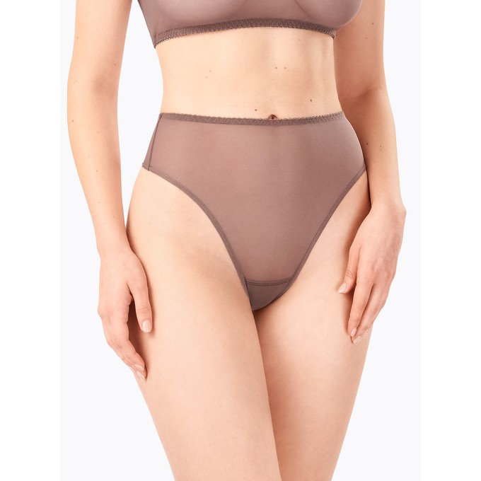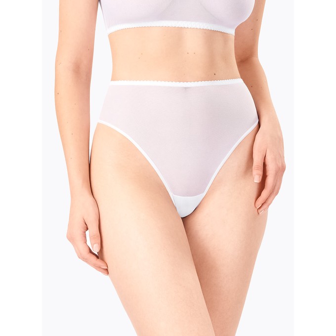 Определить размерСтринги с высокой линией талии из эластичной сетки с открытой линией бедра. Подкладка ластовицы из хлопка. Мягкая эластичная тесьма по линии талии. Узкая эластичная тесьма по бедрам настрочена незаметным плоским швом.