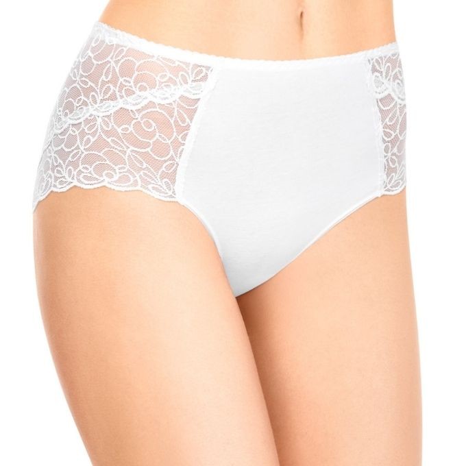Определить размерТрусы из натурального хлопка с лайкрой с высокой линией талии. Боковая часть выполнена из эластичного кружева. Узкая эластичная лента по линии бедер настрочена незаметным плоским швом. Мягкая эластичная тесьма по линии талии.