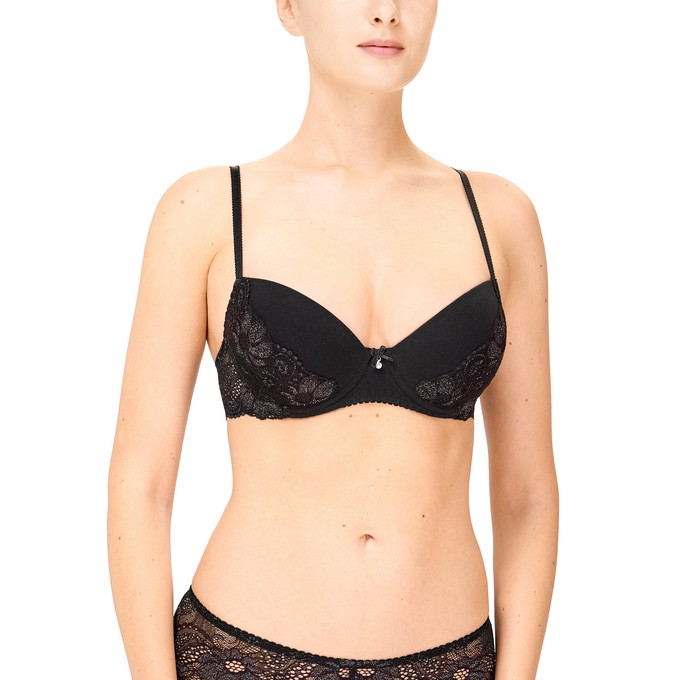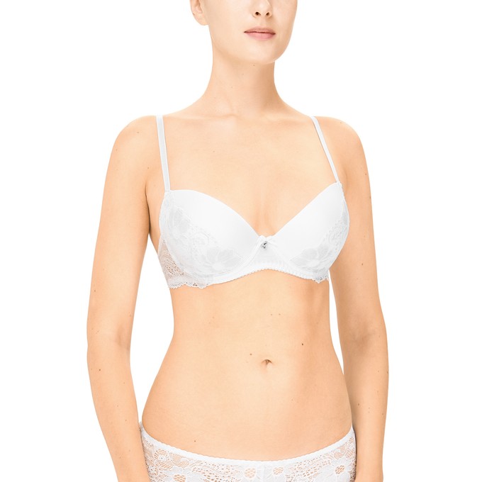 Определить размерБюстгальтер «пуш-ап» из широкого эластичного кружева с люрексом, на каркасах. Формованные чашки с хлопковой изнанкой. Мягкая изнаночная сторона резинок и бретелей. Декор: бантик с бижутерией.