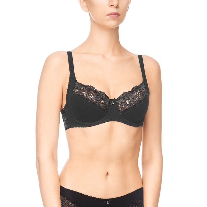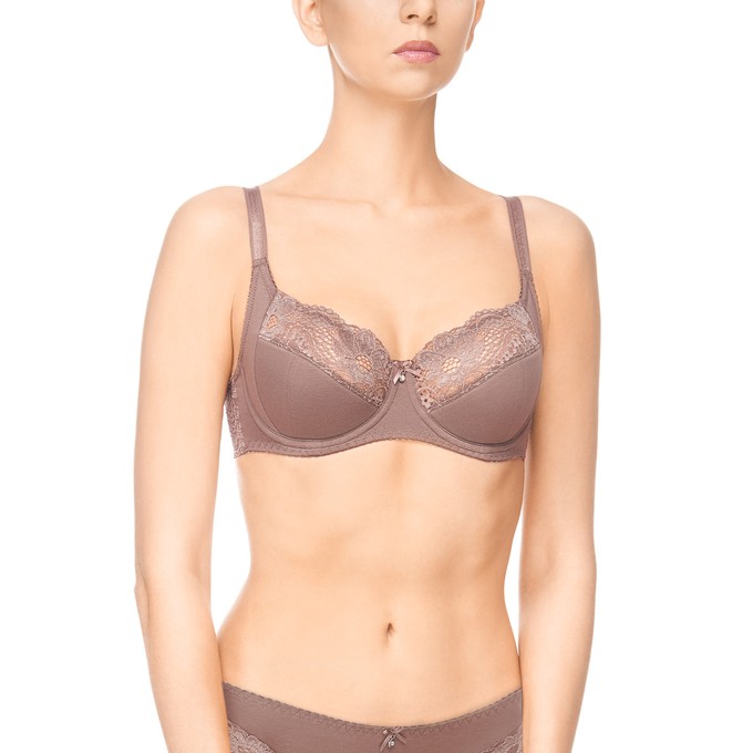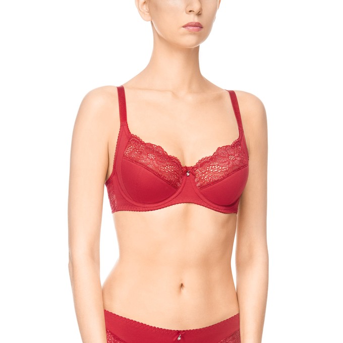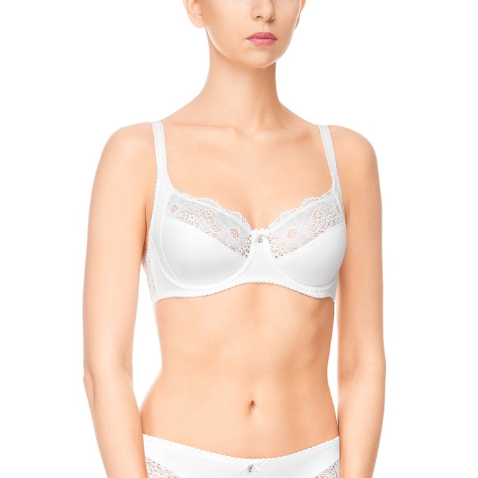 Определить размерБюстгальтер из хлопка, на каркасах, с настрочными бретелями. Отделка чашки: кружево. Нижние части и боковая поддерживающая деталь чашки на дубляже с хлопком. Верхний край чашки фигурный, усилен настрочной резинкой. Бочок стана из кружева. Ластовица из хлопка. Подкладка ластовицы выполнена из трикотажного неэластичного полотна (монокапрон). Широкая резинка по стану обеспечивает идеальную посадку и правильное распрелеление нагрузки. Мягкая изнаночная сторона тесьмы и бретелей. Декор: бантик с бижутерией.