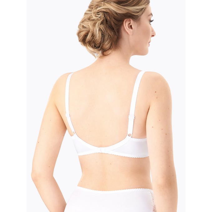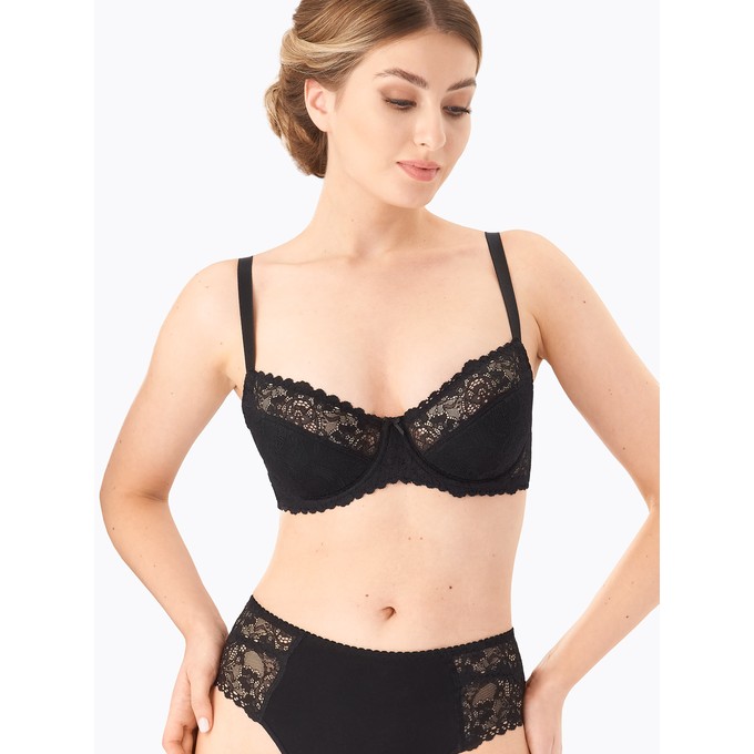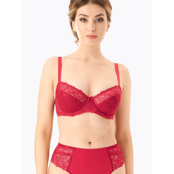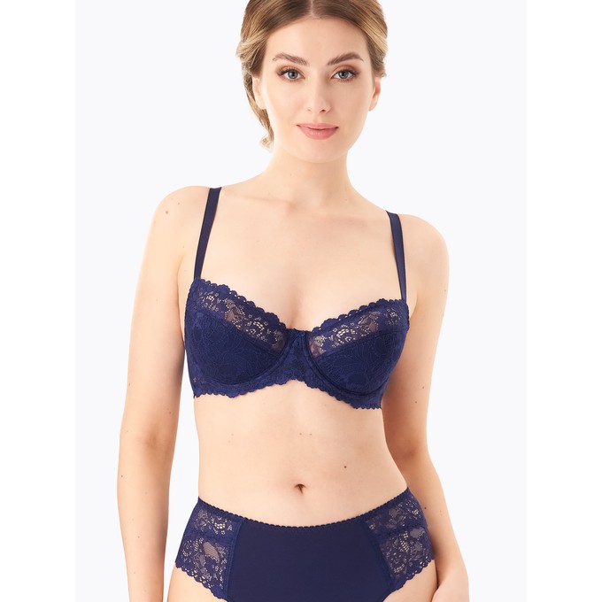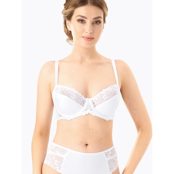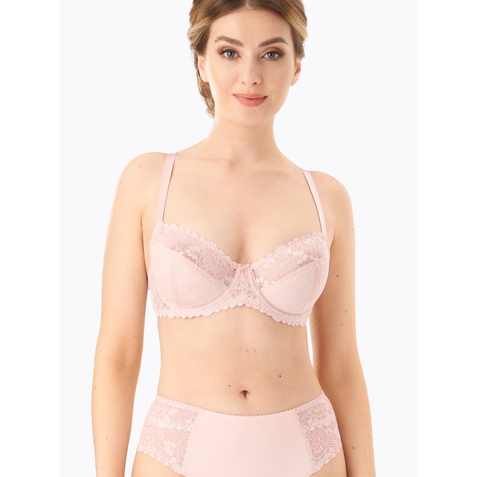 Определить размерБюстгальтер из широкого эластичного кружева, на каркасах. Нижние части чашки на дубляже с хлопком. Боковые детали из гладкого эластичного полотна Tactel. Мягкая изнаночная сторона тесьмы и бретелей. Декор: бантик.