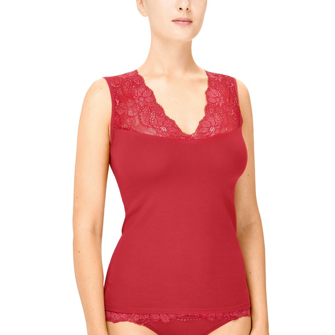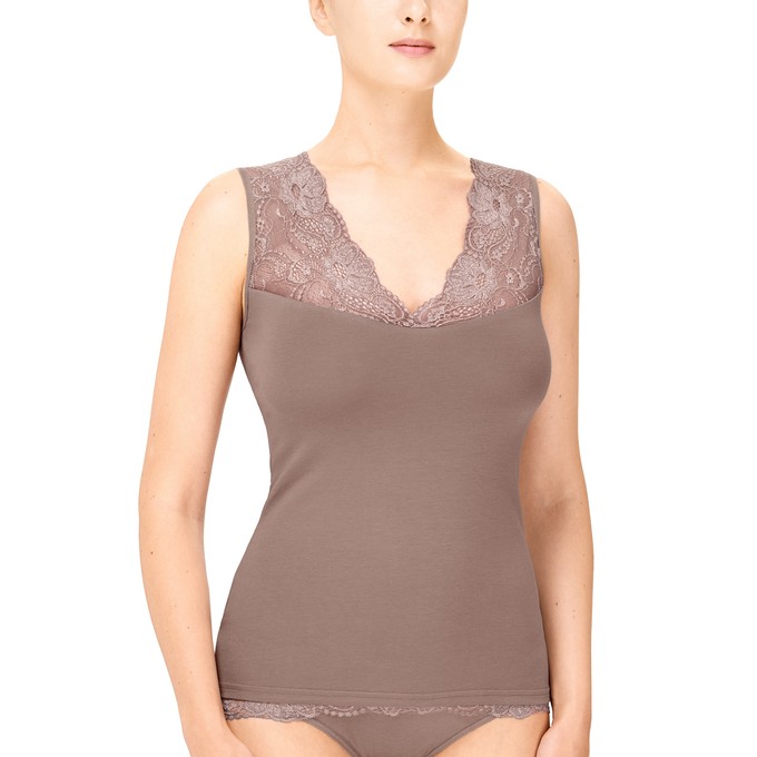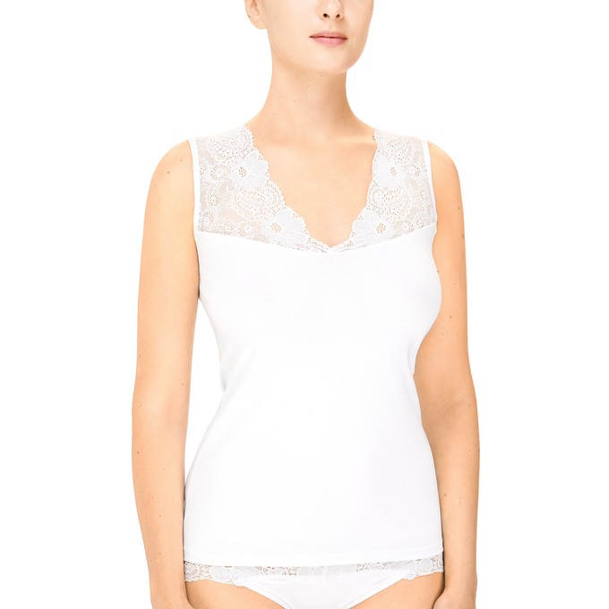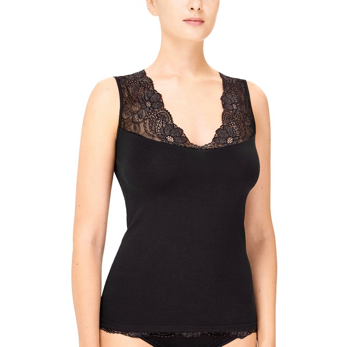 Определить размерМайка из натурального хлопка с лайкрой, прилегающего силуэта на широких бретелях. Отделка по верхнему срезу из широкого эластичного кружева с люрексом.