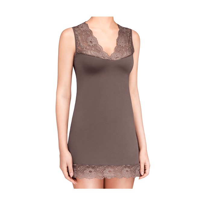 Определить размерНочная сорочка из натурального хлопка с лайкрой, полуприлегающего силуэта длиной до середины бедра. Отделка из широкого эластичного кружева с люрексом по кокетке и низу изделия.