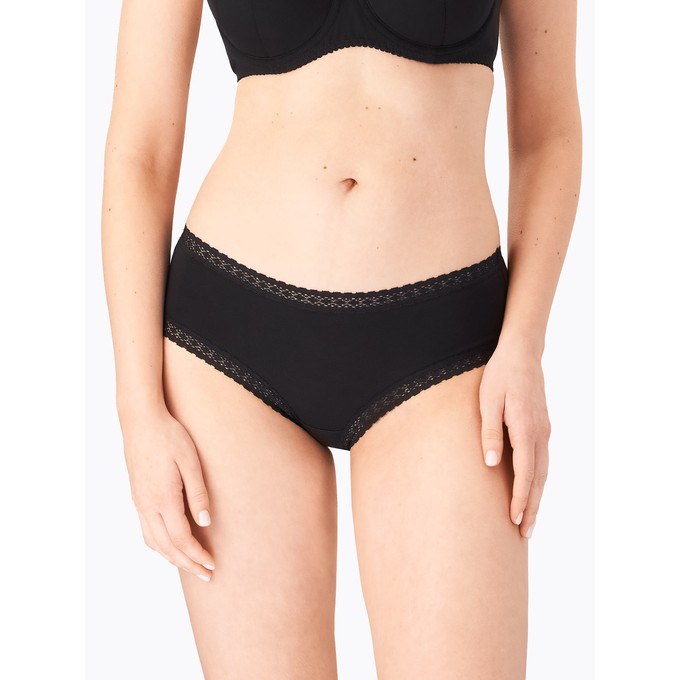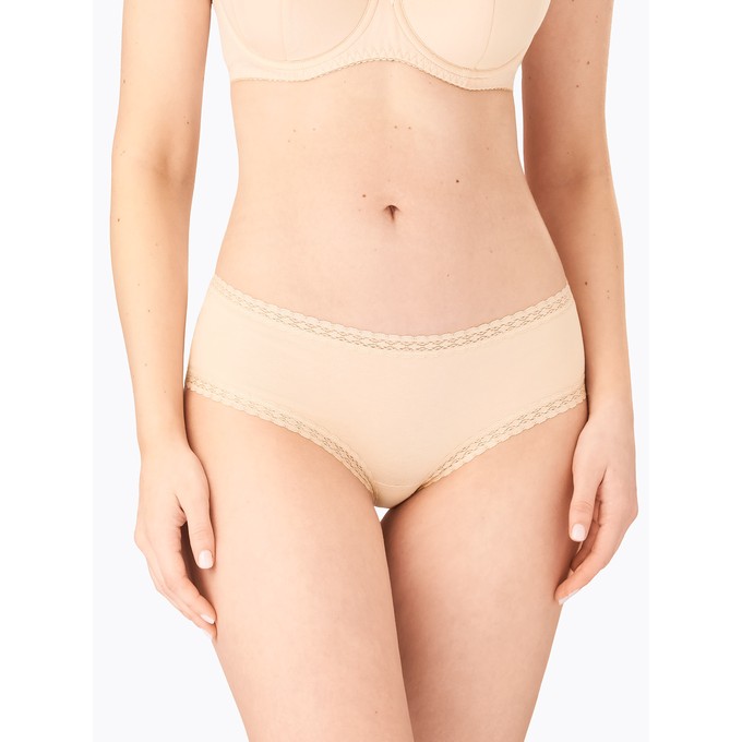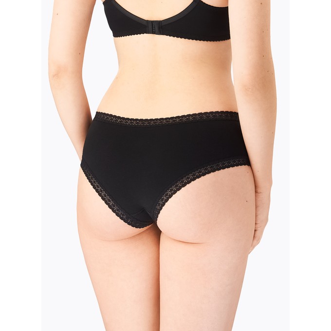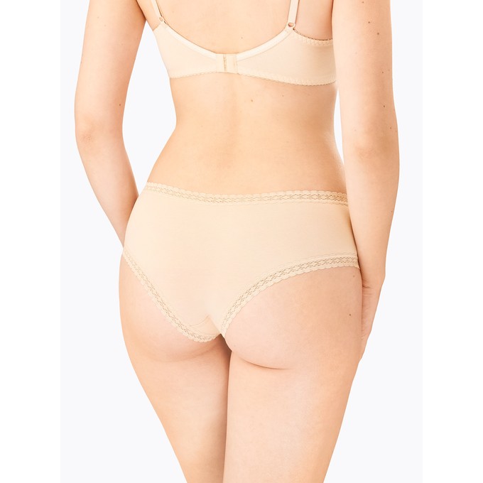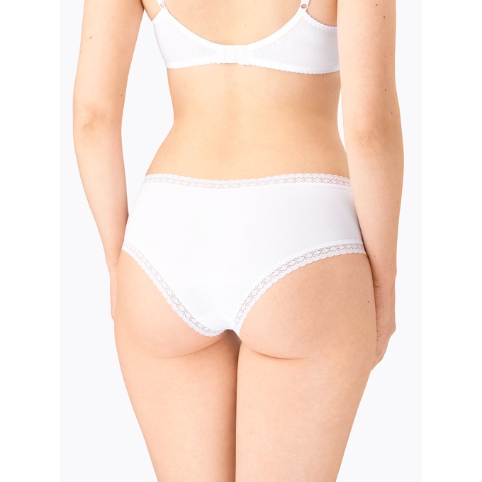 Определить размерБрифы из натурального хлопка с лайкрой с низкой линией талии. Ластовица и узкие эластичные кружева по талии и бедрам настрочены незаметным плоским швом.
