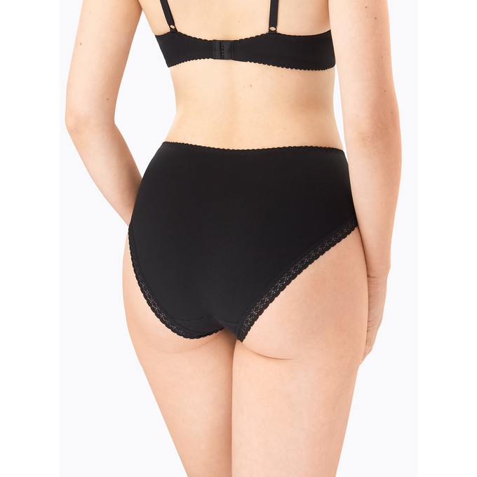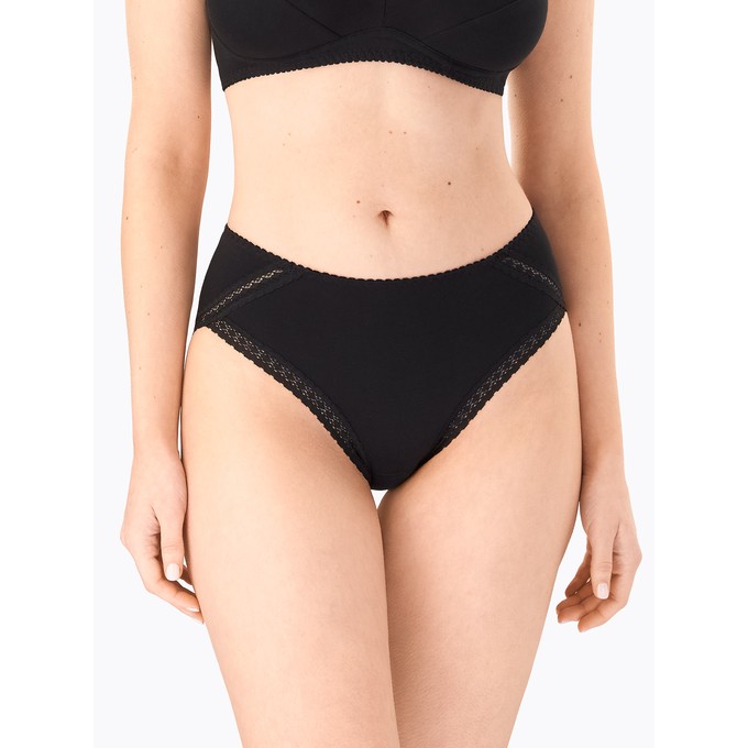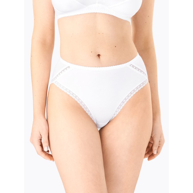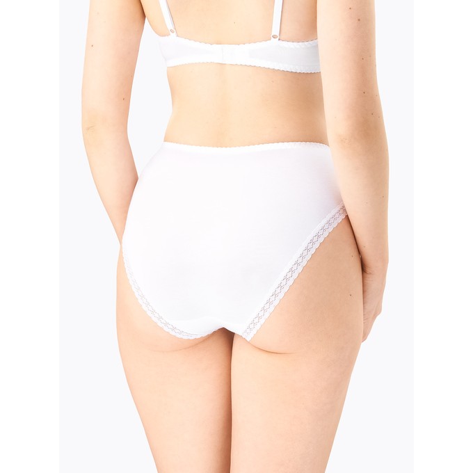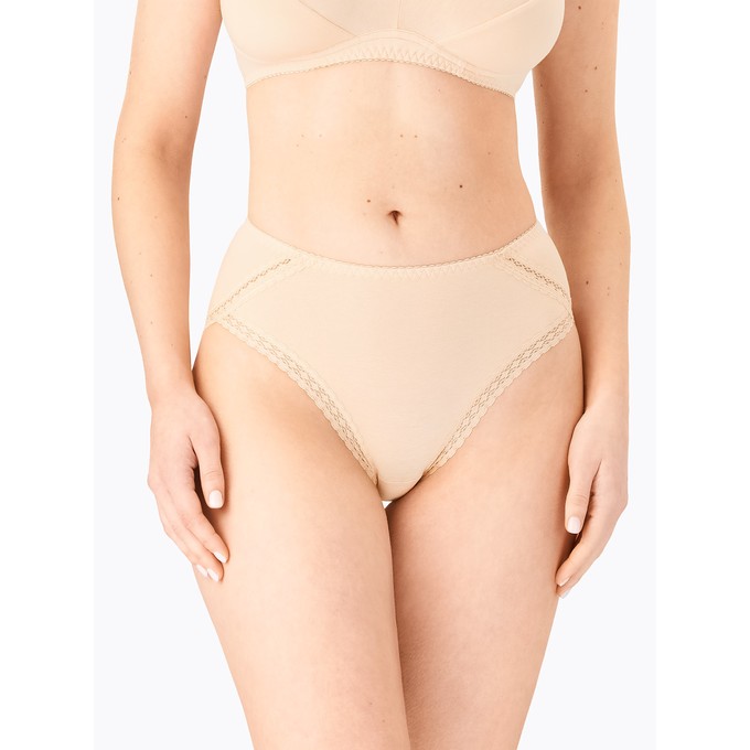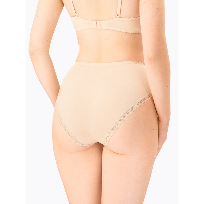 Определить размерТрусы из натурального хлопка с лайкрой с высокой линией талии. Узкое эластичное кружево по бедрам настрочено незаментым плоским швом. Мягкая эластичная тесьма по талии.