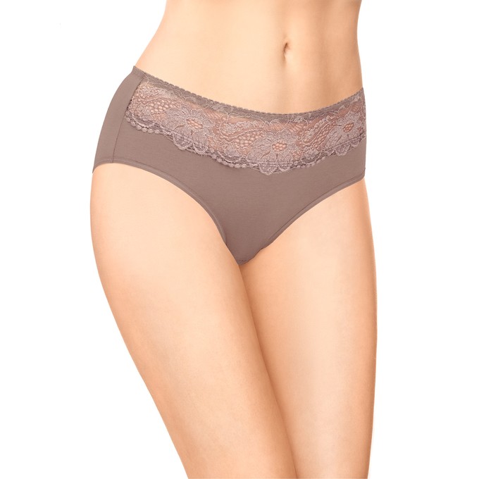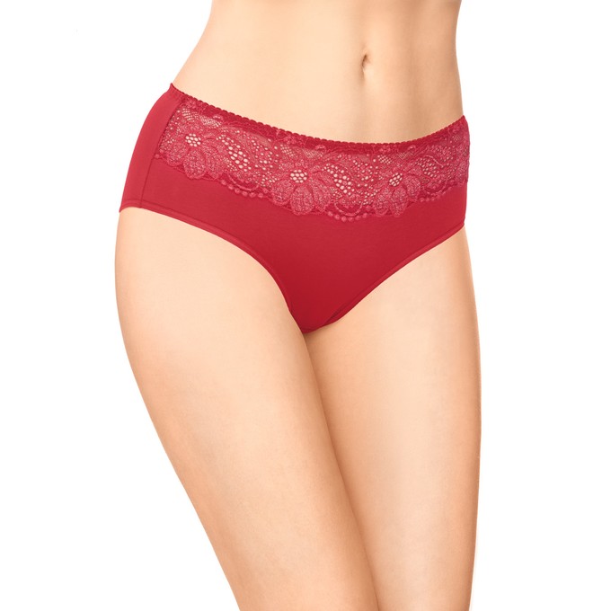 Определить размерТрусы из натурального хлопка с лайкрой со средней линией талии. Отделка по передней части из широкого эластичного кружева с люрексом. Мягкая эластичная лента по талии. Ластовица и узкие эластичные ленты по бедрам настрочены незаметным плоским швом.