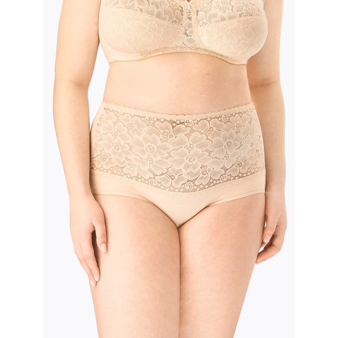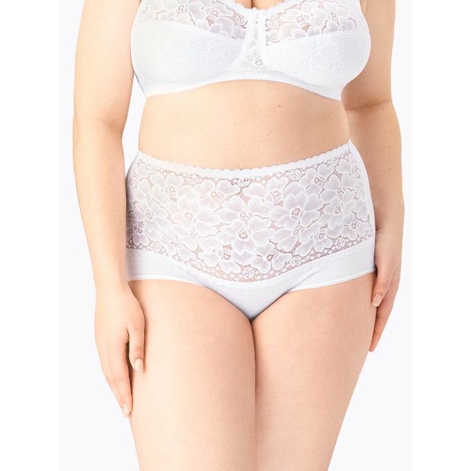 Определить размерТрусы из натурального хлопка с лайкрой с высокой линией талии. Отделка по передней части из широкого эластичного кружева. Мягкая эластичная лента по талии. Ластовица и узкие эластичные ленты по бедрам настрочены незаметным плоским швом.